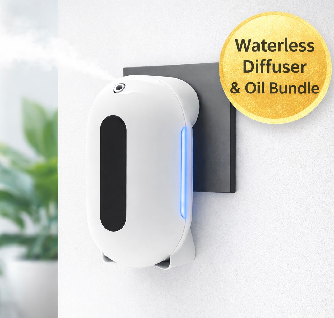 Elevate your space with our Waterless Diffuser & Oil Bundle, featuring a 4 oz premium fragrance oil and a cordless diffuser designed to scent up to 500 sq. ft. Enjoy Bluetooth connectivity with phone-controlled settings, customizable scheduling, and 7 LED light color options for the perfect ambiance—luxury scenting made simple and mess-free.
